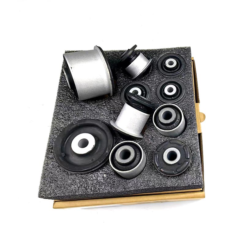 کیت بوش بازوی کنترل تعلیق جلوی آئودی Q7 پورشه کاین (OE 7L0407CTTZ) که برای تعمیر سیستم تعلیق جلو و تعمیر و نگهداری شاسی طراحی شده است. این کیت شامل 10 بوش در هر خودرو است و با ساختار لاستیک و فلزی با استحکام بالا برای جذب لرزش جاده، کاهش صدای شاسی و بهبود پایداری سیستم تعلیق ساخته شده است.